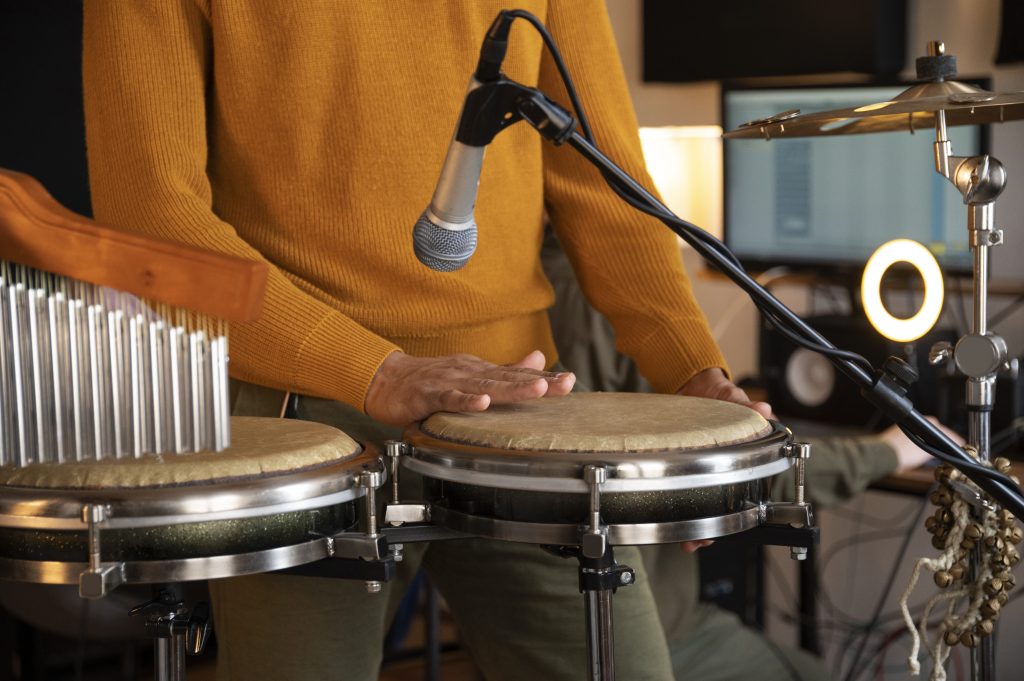 Esta cátedra teórica-práctica consta de ocho niveles (trimestrales), divididos en dos años, -trayecto inicial y trayecto avanzado- más un semestre dedicado a la conformación de una banda, creación y producción de un tema que será grabado de manera profesional para luego, desarrollar la campaña de lanzamiento en los medios y plataformas digitales, así como la producción de un concierto. Como parte del programa, se estudia la historia de la percusión, afinación, ejecución de los instrumentos bongó, timbal y tumbadora, así como las claves afro caribeñas, técnicas de las manos, independencia y todo lo relacionado con los instrumentos de percusión menor dedicados a cada género musical y fusiones. Aplicamos las más novedosas y efectivas técnicas ajustadas a los estilos nacionales y latinos, enlazado al libro “Fundamentos teóricos de la música” y a los rudimentos contemplados en el método diseñado para la cátedra. Se propone un repertorio variado que permite enriquecer nuestro oído y conectarnos tanto con la apreciación musical, como con la historia de la música para hacernos de un criterio elevado en esta disciplina. Como parte de su aprendizaje y complemento fundamental, la escuela ofrece una serie de talleres, clases magistrales y conciertos pedagógicos. En las instalaciones de Artmónico Estudios Musicales se facilita el instrumento para el estudio de esta cátedra.